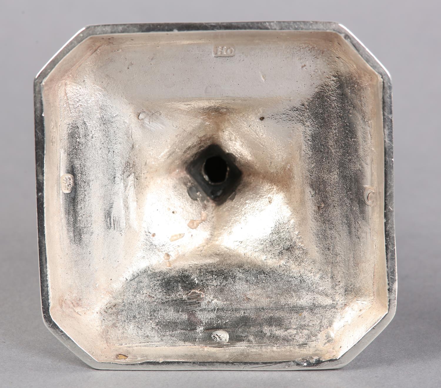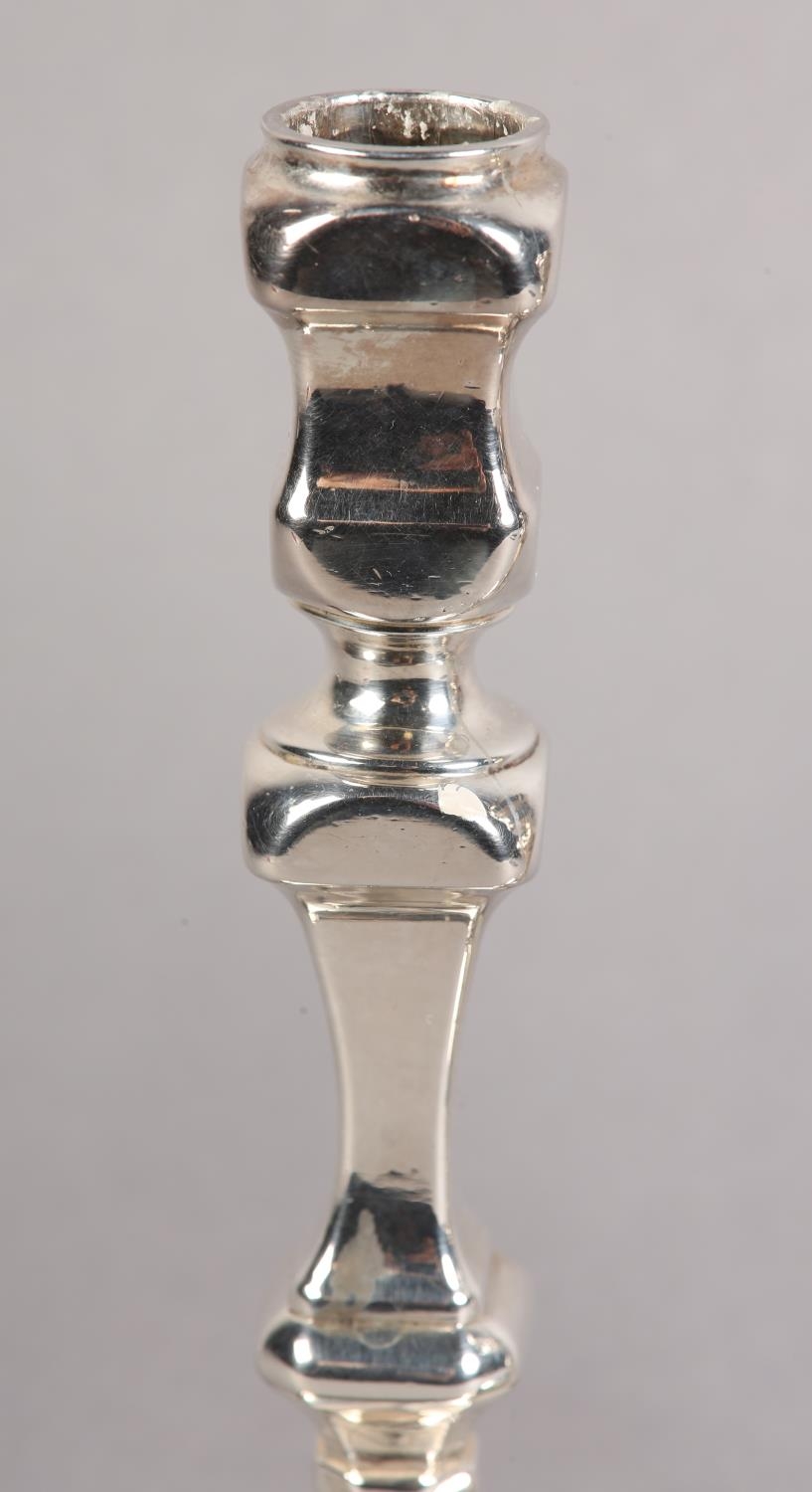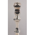 Only one has the lions head on the sconce but the other has an oval outline in the corresponding area. The outline can be felt so it may be either scored or a patch. The corresponding interior has a slightly raised area. There is no further engraving to either stick. The stick with the lions head has an area on the lower knop where the surface is dull as if something has removed a thin layer of metal