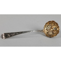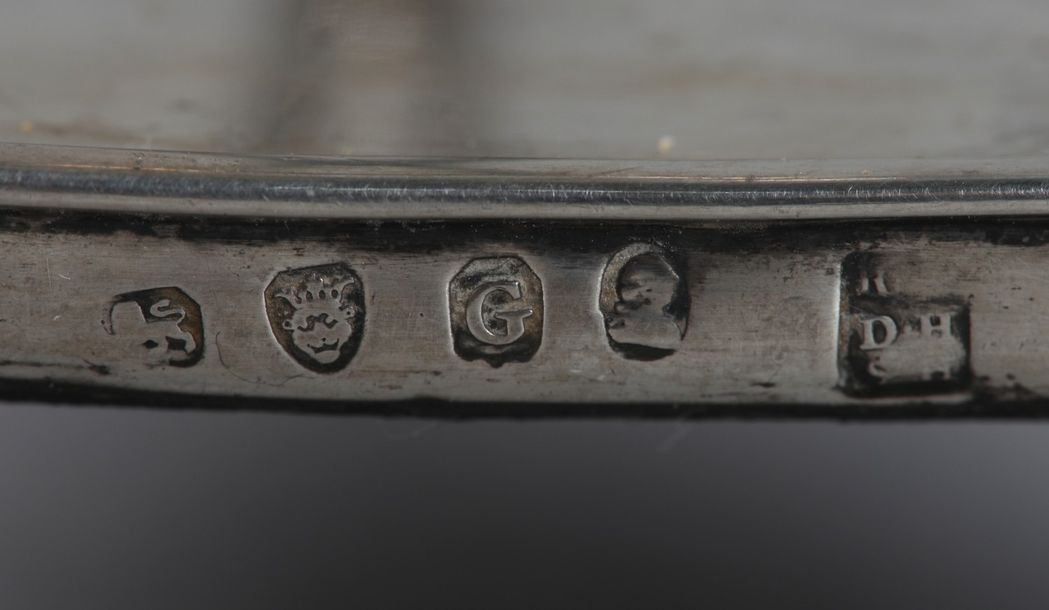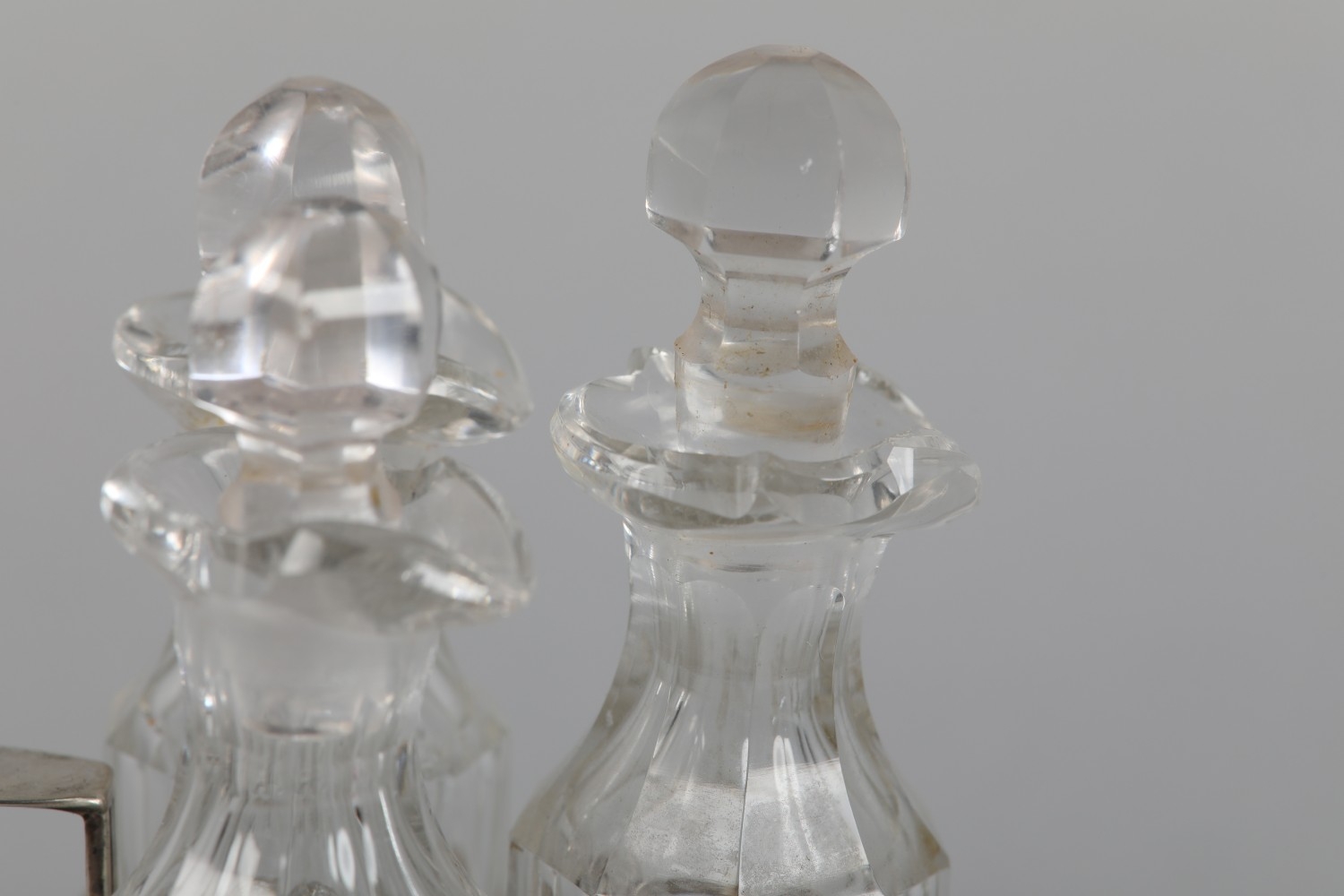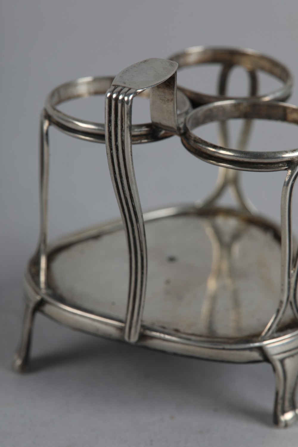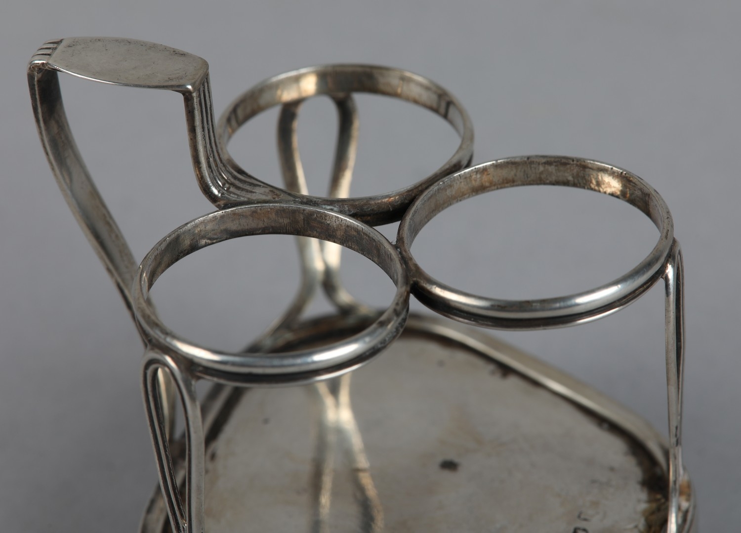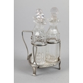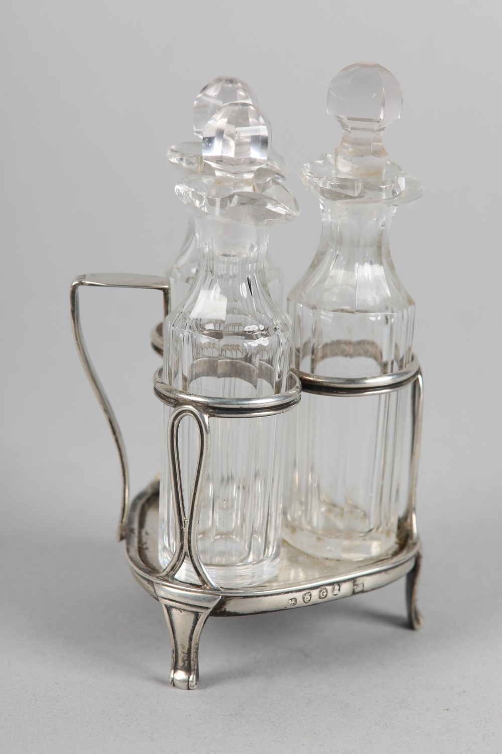 A GEORGE III SILVER THREE BOTTLE BREAKFAST CRUET, London 1802 for David & Samuel Hennel, with reeded handle, on three bracket feet, 13cm high