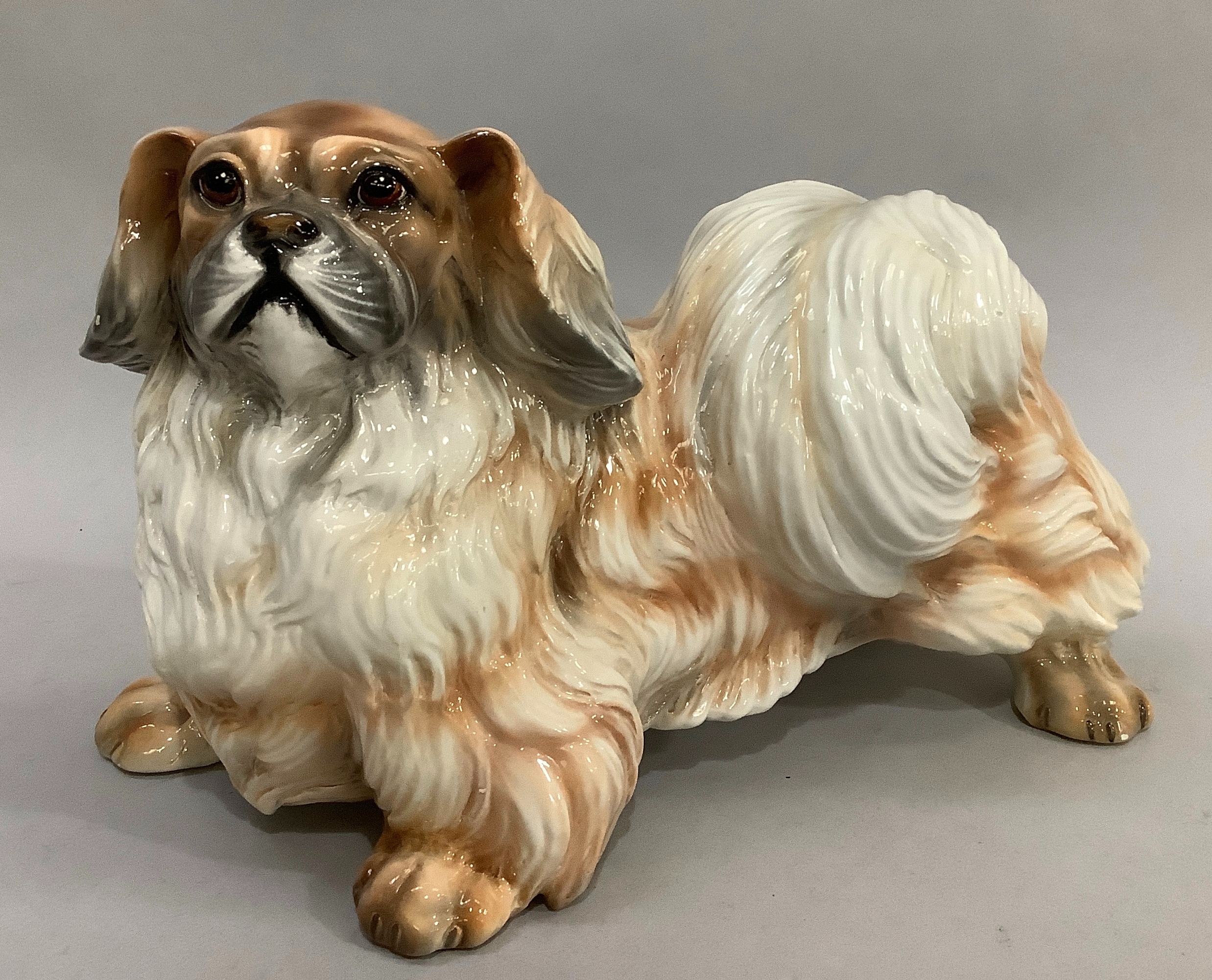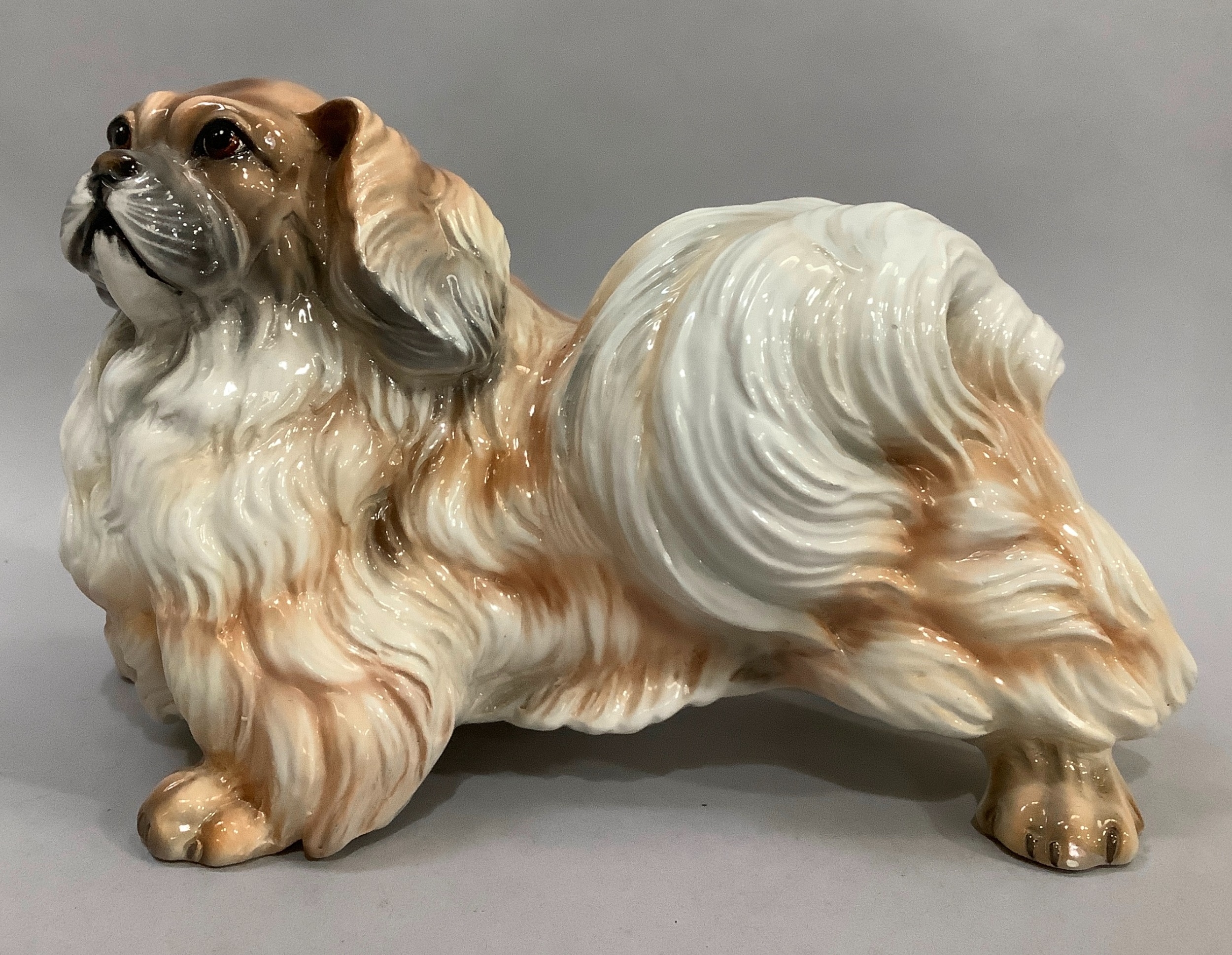An Italian pottery model of a Pekingese dog, measuring 20cm high x approximately 31.5cm long