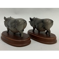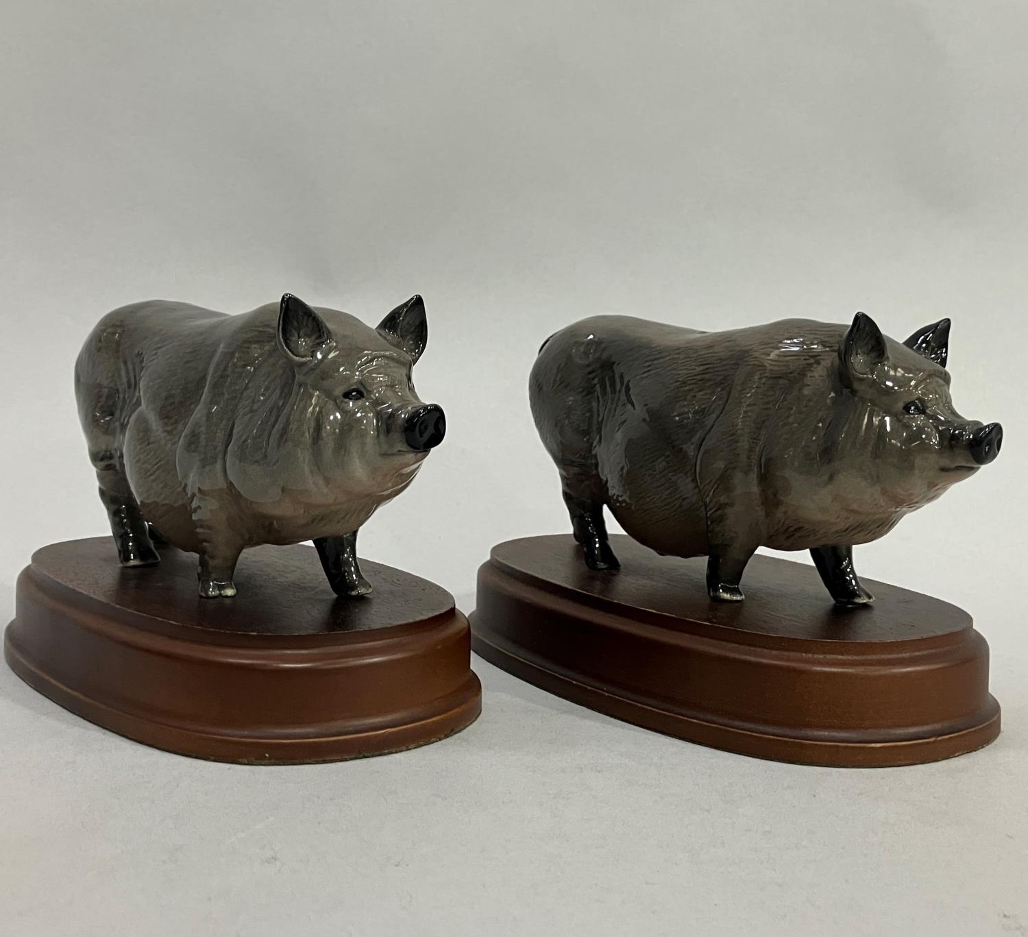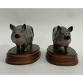 A pair of china pigs, each mounted on an oval plinth, overall 10.5cm high x 17.5cm wide