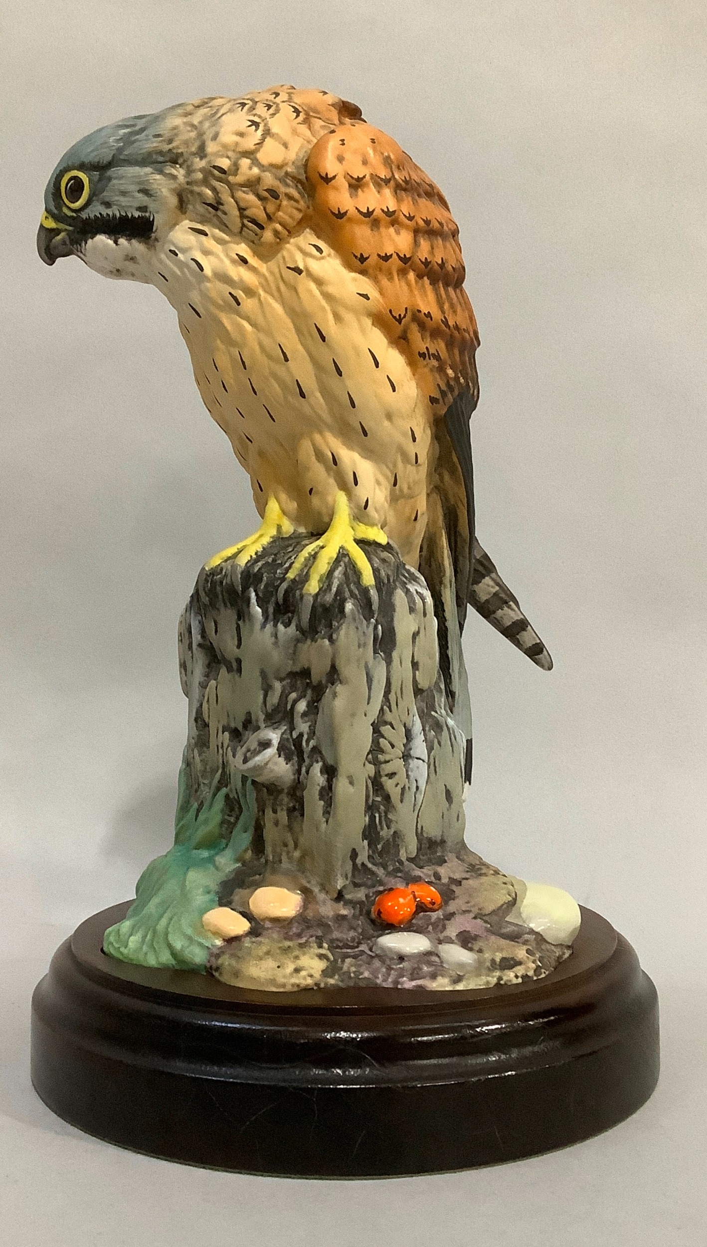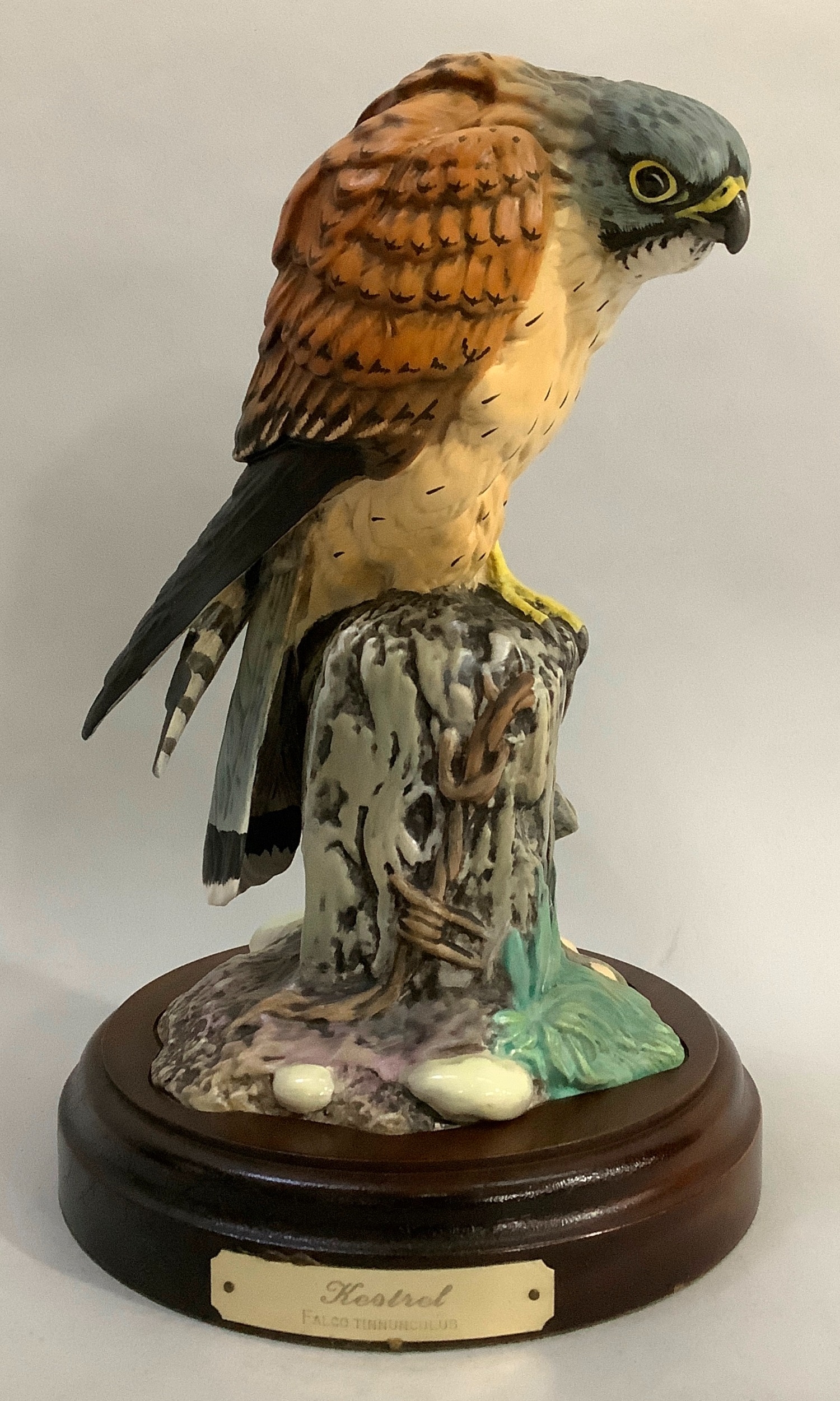 A Royal Doulton model of a kestrel, limited edition no. 375 of 2,500 and signed to underside, model no. DA205 with plinth base, 28cm high