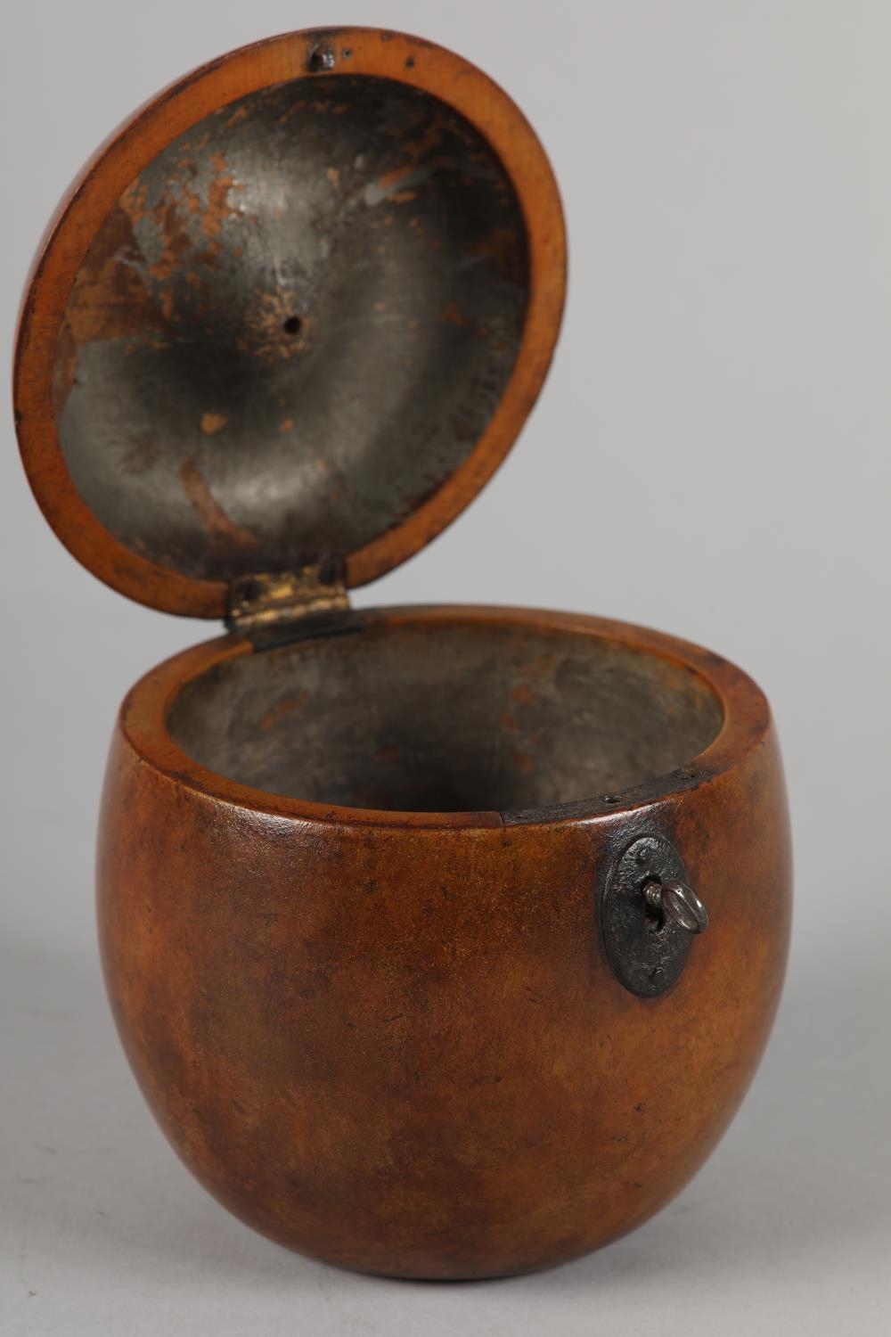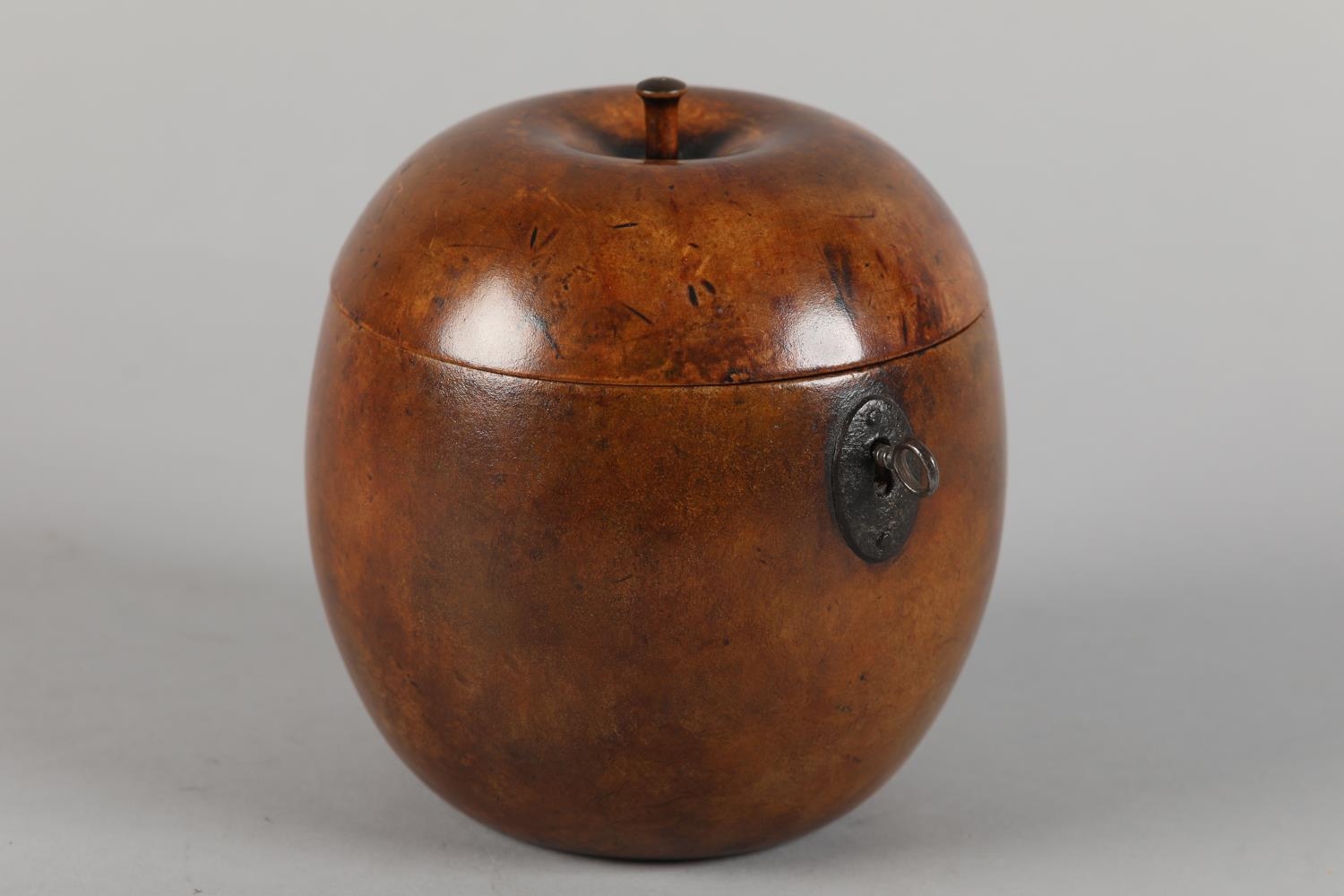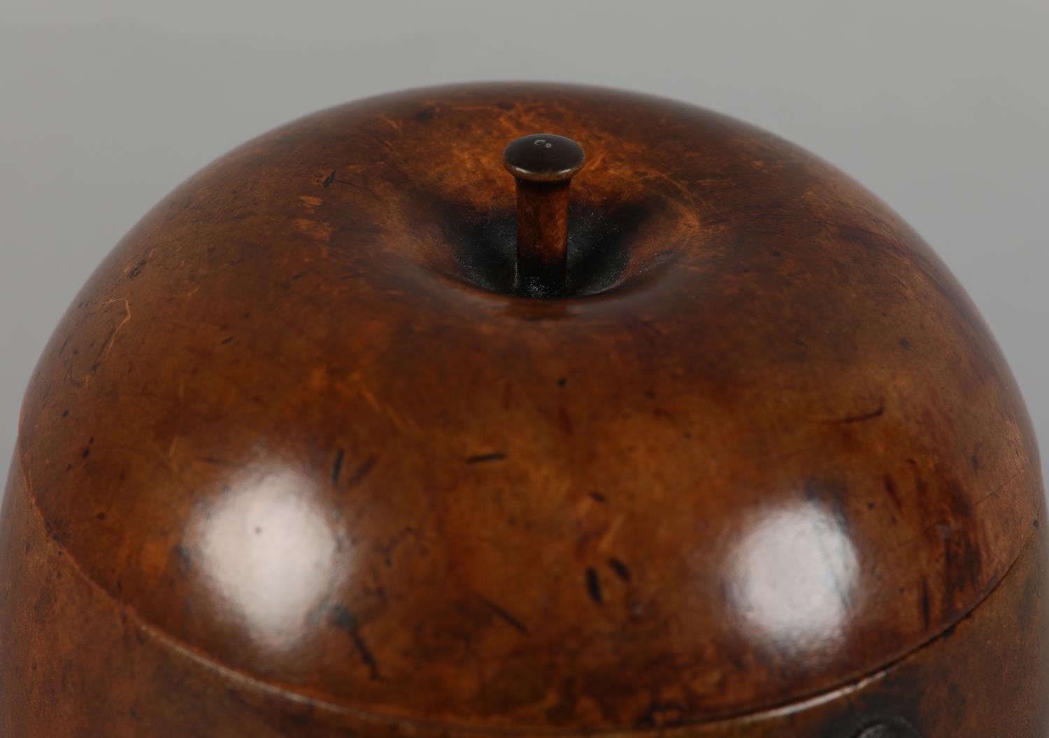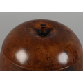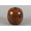 A GEORGE III FRUITWOOD APPLE-SHAPED TEA CADDY, early 19th century, 12.5cm high