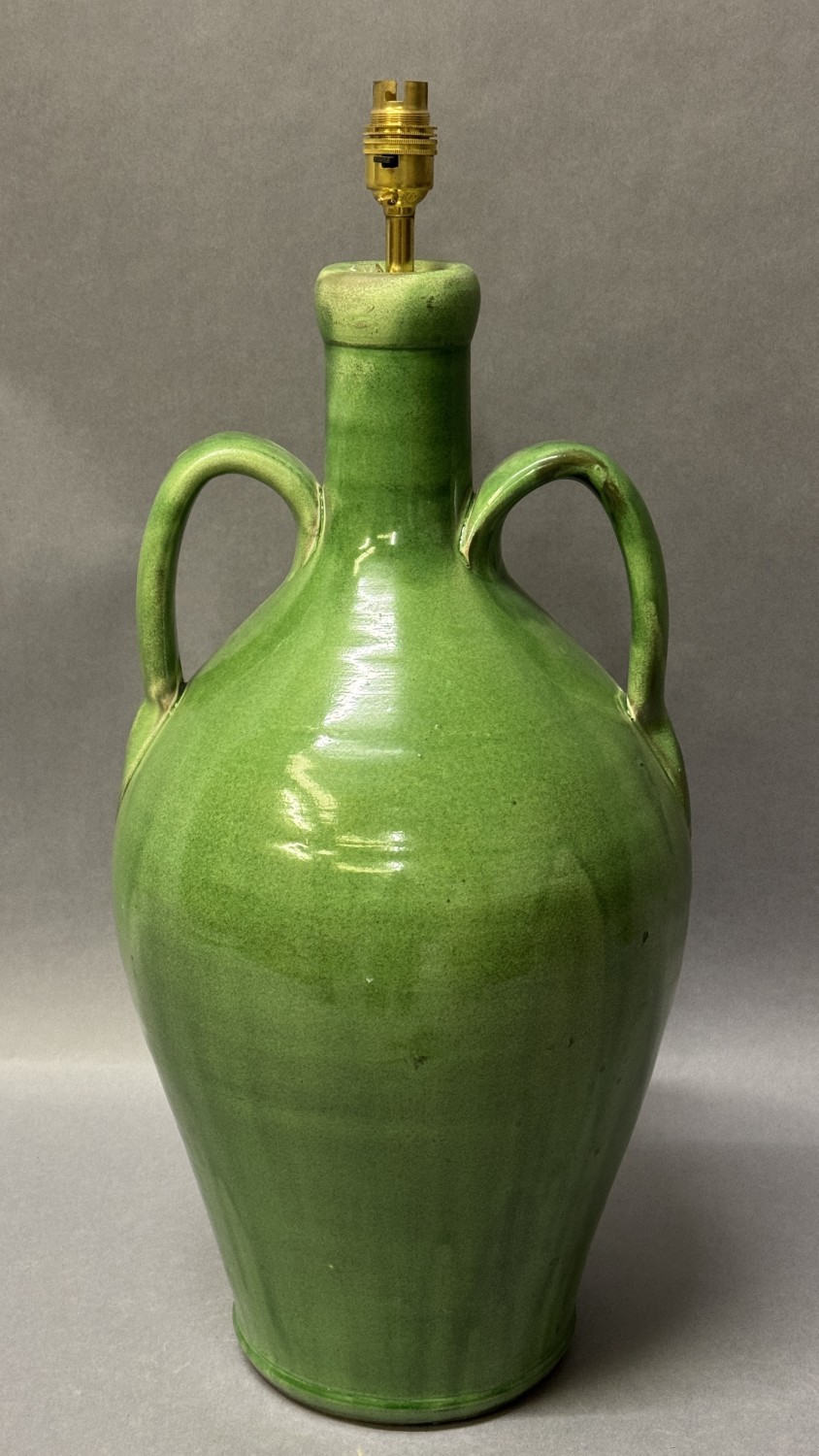 Pair of green glaze twin handled vase table lamp, 60cm high (2) Ref: 110629